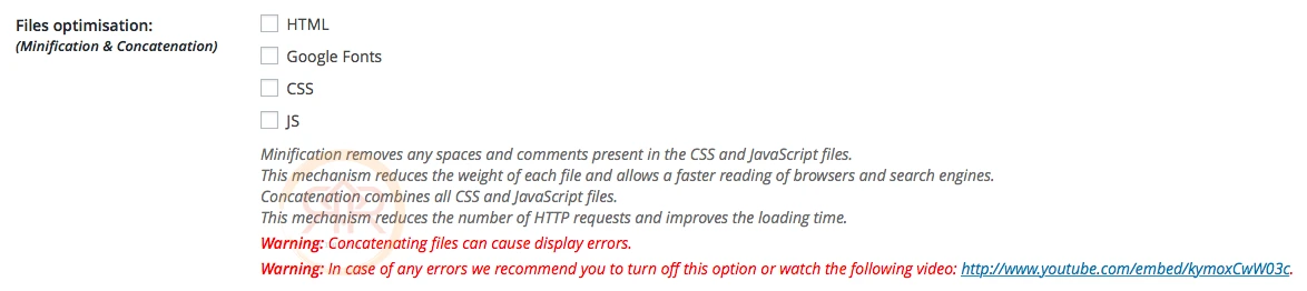 Kami menyarankan agar minification dan penggabungan dinonaktifkan kecuali Anda adalah WordPress Developer yang sangat berpengalaman.