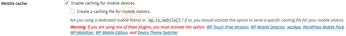 Anda dapat mengaktifkan caching seluler selama Anda menggunakan tema reguler atau responsif tanpa plugin seluler apa pun.