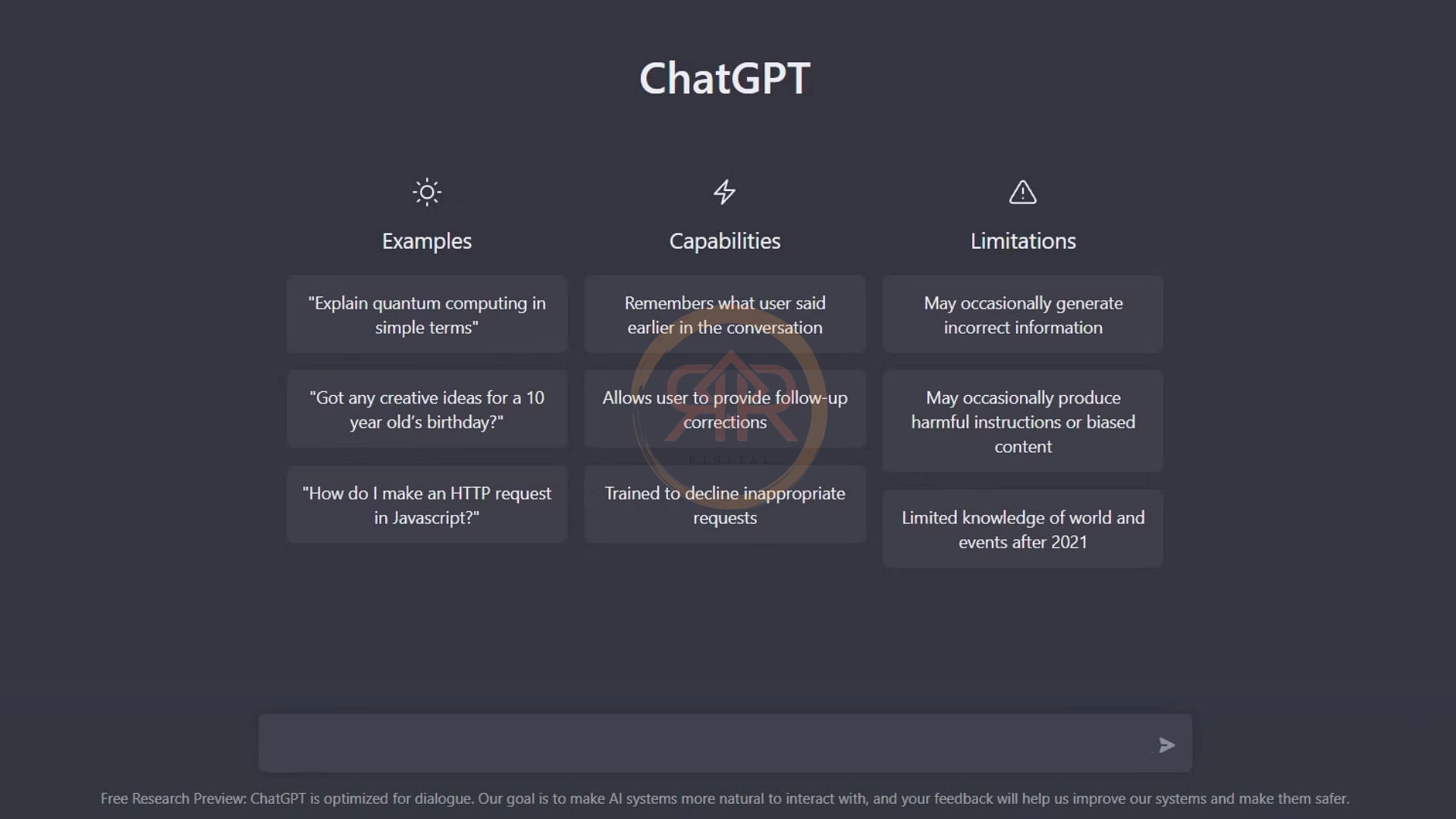 Open AI telah membangun bot berdasarkan model teknologi GPT-3.5, memungkinkannya untuk memiliki aliran pesan yang lebih lancar dan mengobrol seperti orang sungguhan. OpenAI sebelumnya datang dengan konverter teks-ke-gambar, DALL-E, yang menggemparkan internet, dengan chatbot AI ini menjadi proyek organisasi berikutnya.